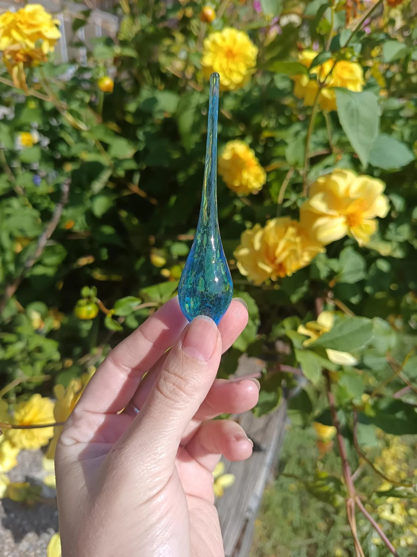 Un épi Bleuté pour se relier aux Esprits Aquatiques.. Douceur et sensibilité. Le verre Borosilicate, apporte cette capacité à accéder aux profondeurs. Pour les entendre et écouter leurs messages. Nous pouvons ainsi être en mesure de les aider à se déployer, transmuter et laisser aller, ce qui est déjà passé.. Un travail sur le cheminement, tout comme les Eaux primordiales et leur fluidité.