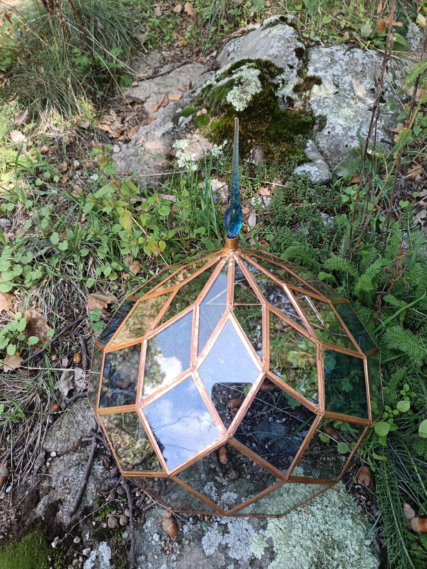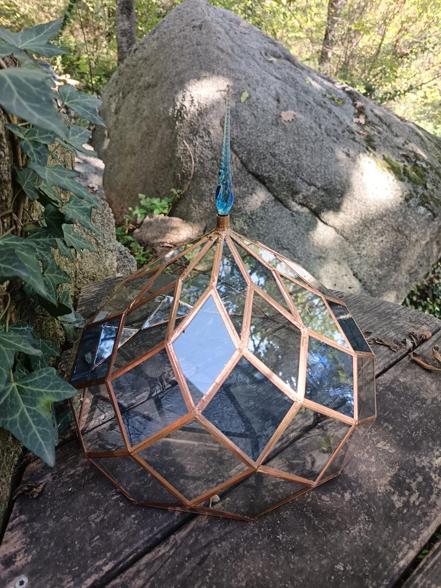 Zome en verre art vibratoire galactique artisanat Architecture Géométrie Sacrée bleu dragonZome en verre coloré